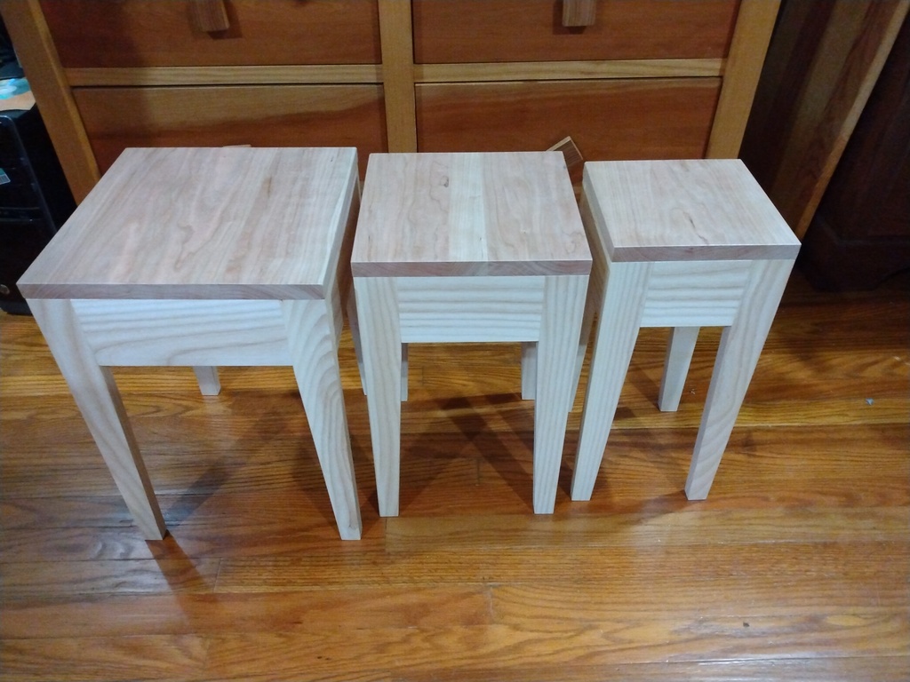 Stackable end tables, ash w/cherry top natural clear polyurethane no stain , $300 set, largest 11.5"x11.5" top